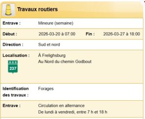 Avis de travaux sur la 237 : début des travaux – vendredi le 20 mars